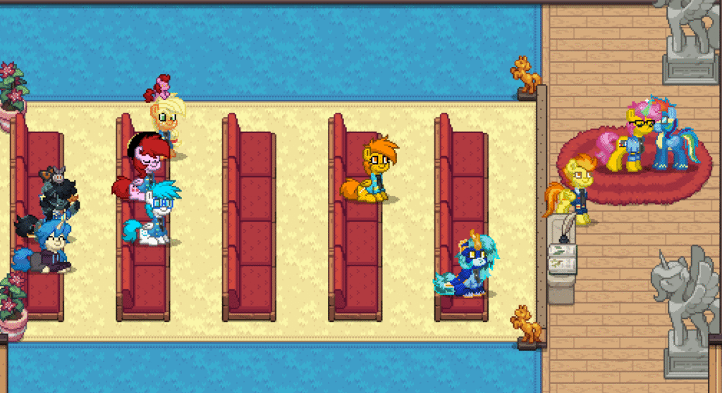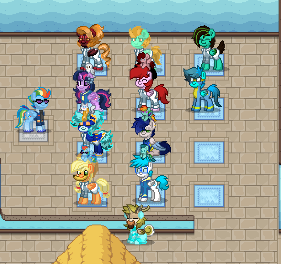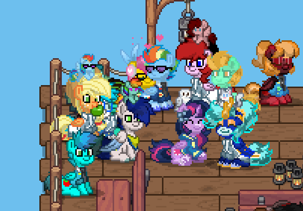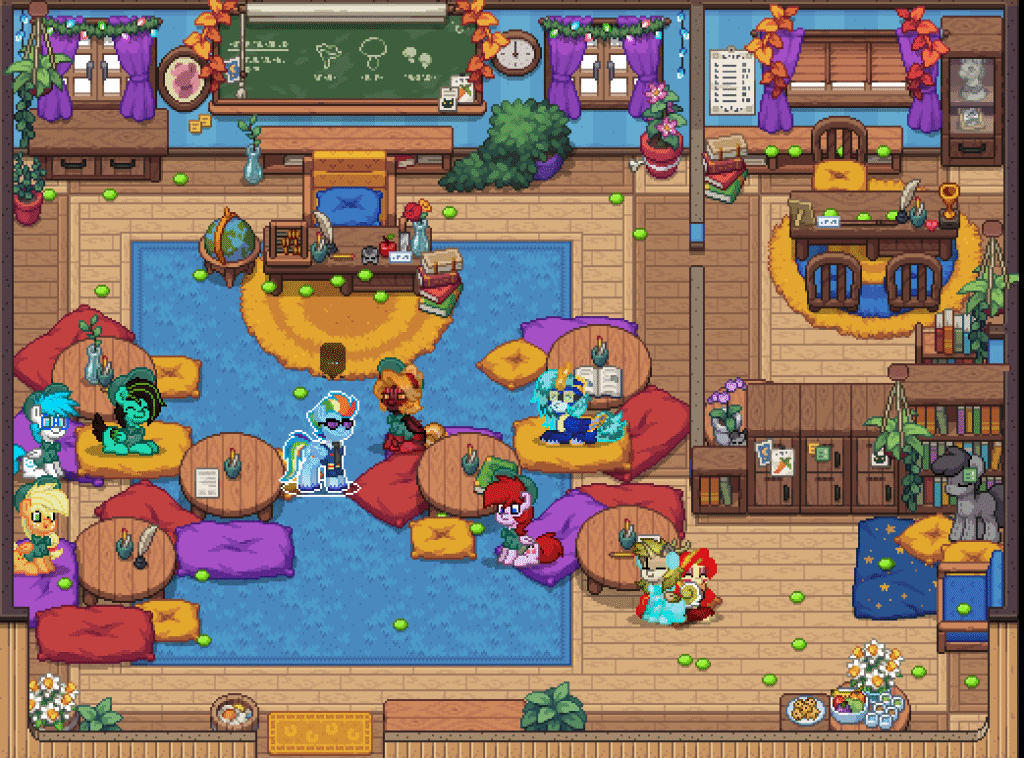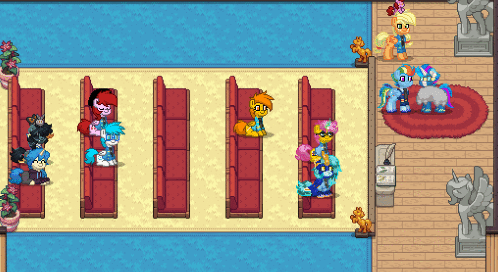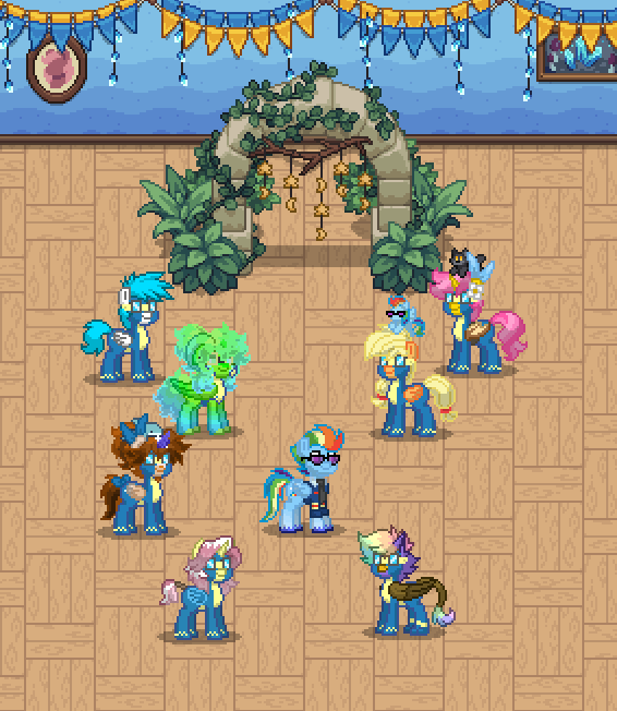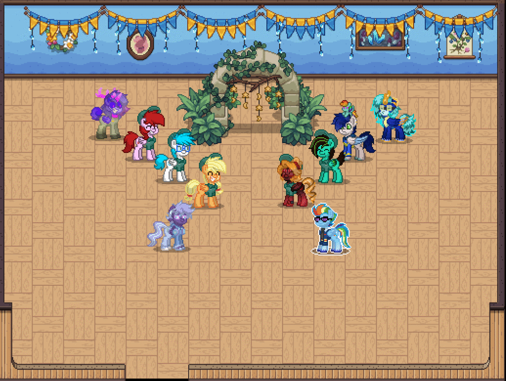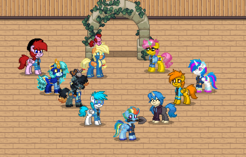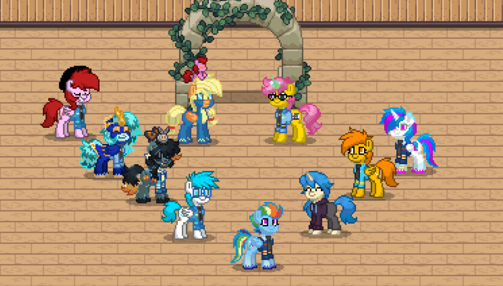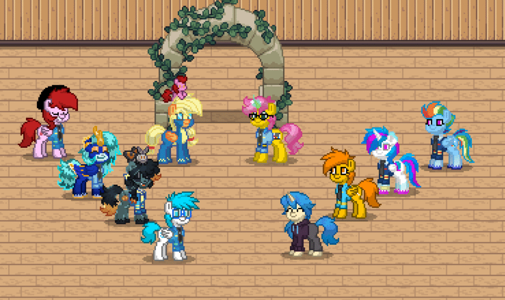 On the grass, in the hallways, near the hangars — quiet conversations that clearly mattered. Maybe comfort. Maybe advice. Maybe just friendship holding two ponies steady when life tries to bend them.
